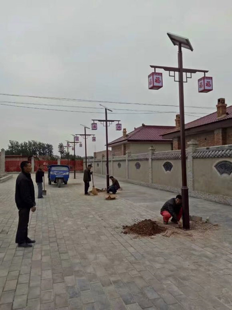 簡介—— 甘肅省慶陽市西峰區(qū)太陽能庭院景觀燈工程,采購了我們蘭光照明倆種形式的配套組合景觀燈具,采用單板雙頭20W,中國福燈籠造型,燈體主體采用深棕色配中國紅,配合3.5米高中國紅庭院柱燈,相互照應配合,使得整體景區(qū)體現(xiàn)出濃濃的喜慶特色。